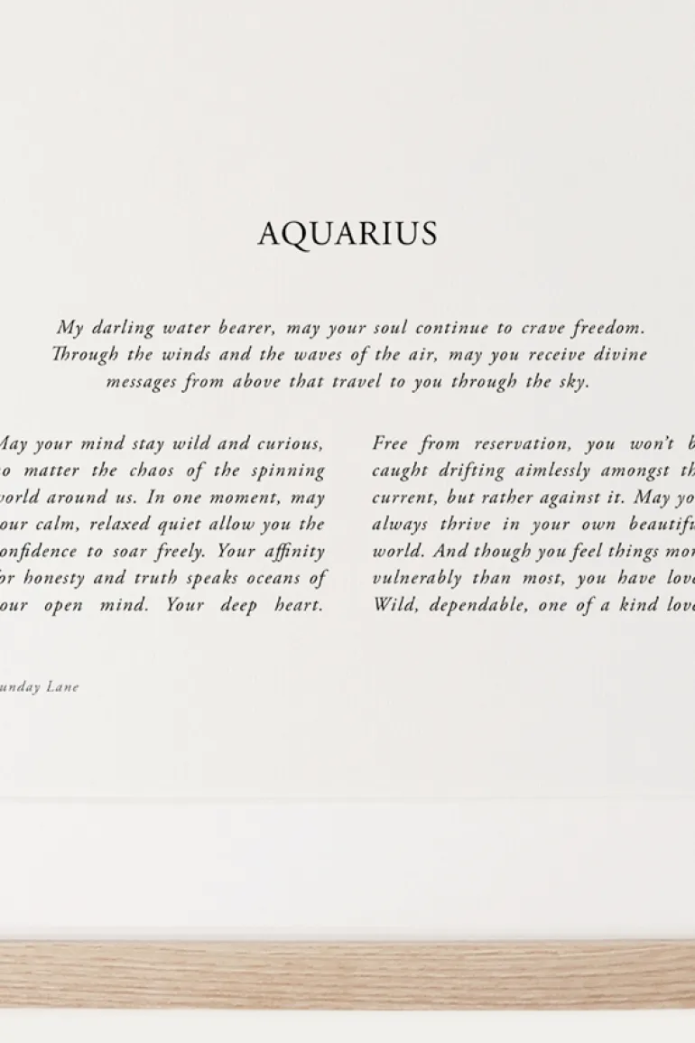 ‘My darling water bearer, may your soul continue to crave freedom.Through the winds and the waves of the air, may you receive divine messages from above that travel to you through the sky.’
