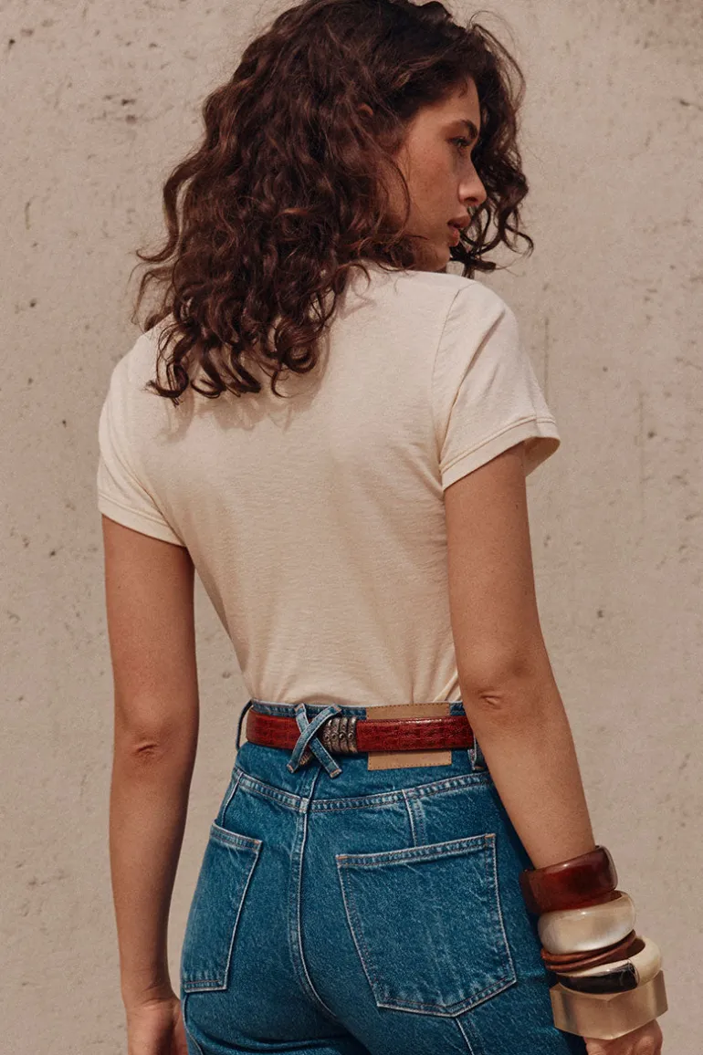 Experience the relaxed yet edgy vibes of the Coastline Cruisin’ Shrunken Tee in Vintage Cream by Spell. Crafted from 100% Organic Pima Cotton Slub, this iconic Spell tee is not only stylish, but also incredibly soft. Its custom print at the front effortlessly adds a cool and carefree touch to any outfit. The slub cotton fabric provides a unique and textured finish, giving this tee the perfect “worn-in” feel. Whether paired with denim or a flowy skirt, this tee is the ultimate casual-chic addition to your wardrobe.